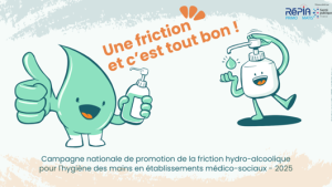 Les missions PRIMO et MATIS mettent à disposition des professionnels des EMH/EOH et des établissements médico-sociaux, une campagne clé en main pour sensibiliser à la friction hydro-alcoolique. Réalisez votre campagne en plusieurs semaines thématiques : FHA qu’est-ce que c’est ?, FHA, tous concernés !, FHA, optimiser l’organisation, FHA, retenir les bonnes informations !
